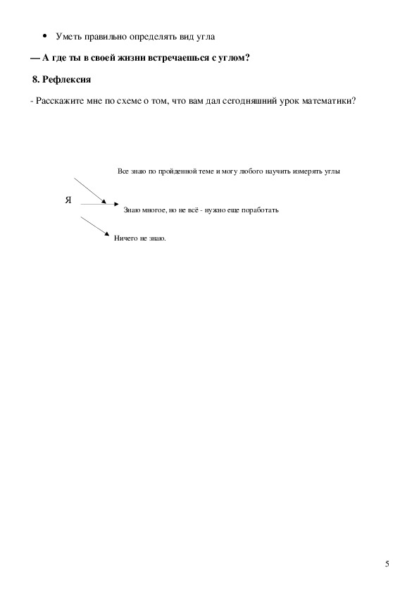 Оборудование: Транспортир, раздаточный материал, сигнальные карточки.