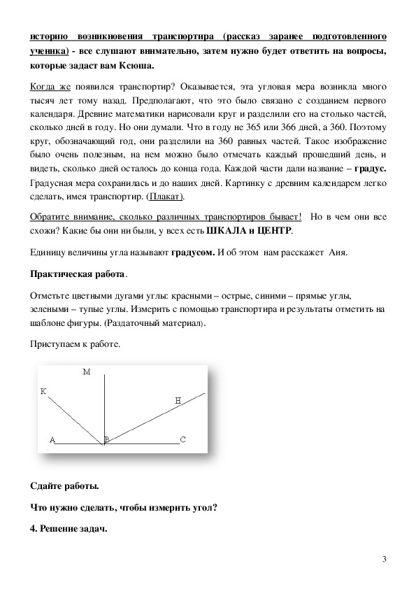 А сейчас Ксюша нам расскажет как и когда возник транспортир т.е.