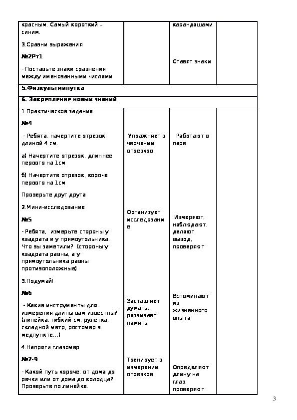 измерения длины отрезков; уметь слушать учителя, задавать вопросы и отвечать на