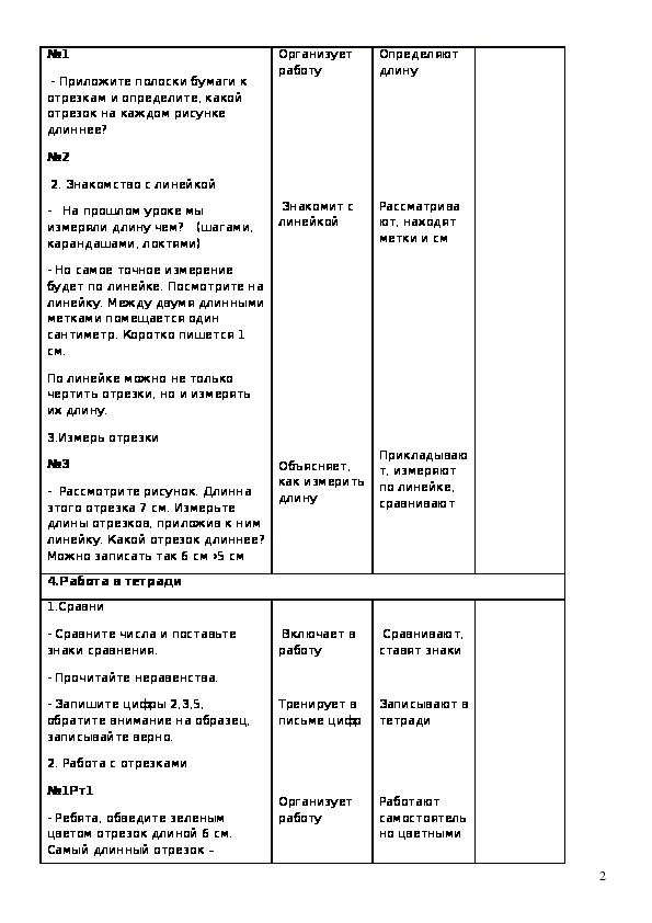 Планируемые результаты: уметь использовать линейку для вычерчивания отрезков, измерения длины отрезков; уметь слушать учителя, задавать вопросы и отвечать на поставленный вопрос; работать в группе; развивать внимание, устную речь, графические навыки и логическое мышление; оценивать свои ответы;