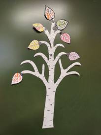 - Вам понравились листочки, которые вы закрашивали? Хотя мы работали все вместе, закрашивали листочки одинаковым цветом, работы у всех получились разные. Вы большие молодцы!
