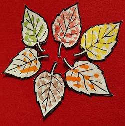 - У вас на столе лежат вот такие белые листочки. Мы должны будем их раскрасить ватными палочками в цвета осени.