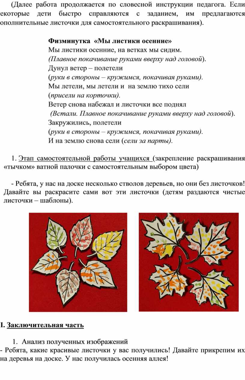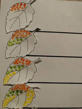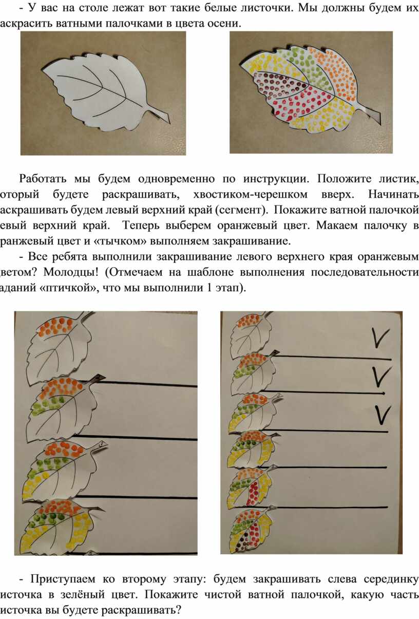 Тема: Осенние листочки. Раскрашивание «тычком» ватной палочки по словесной инструкции