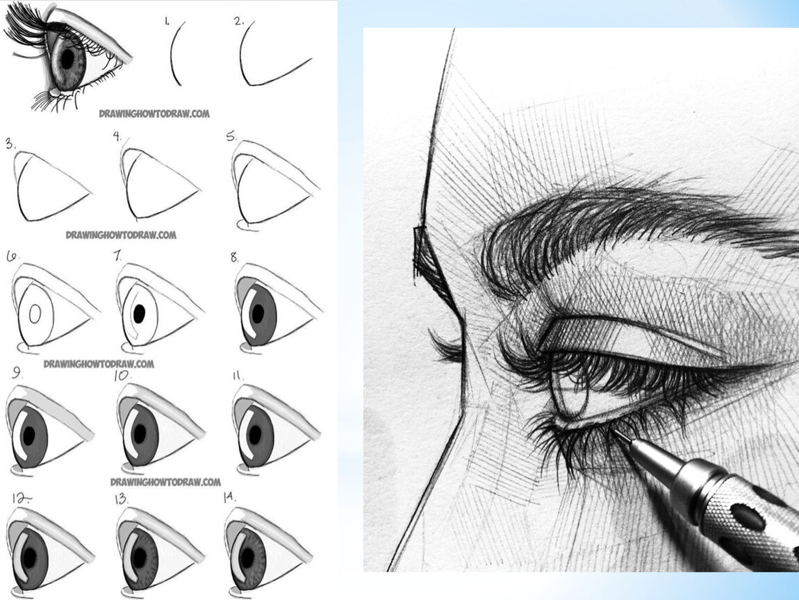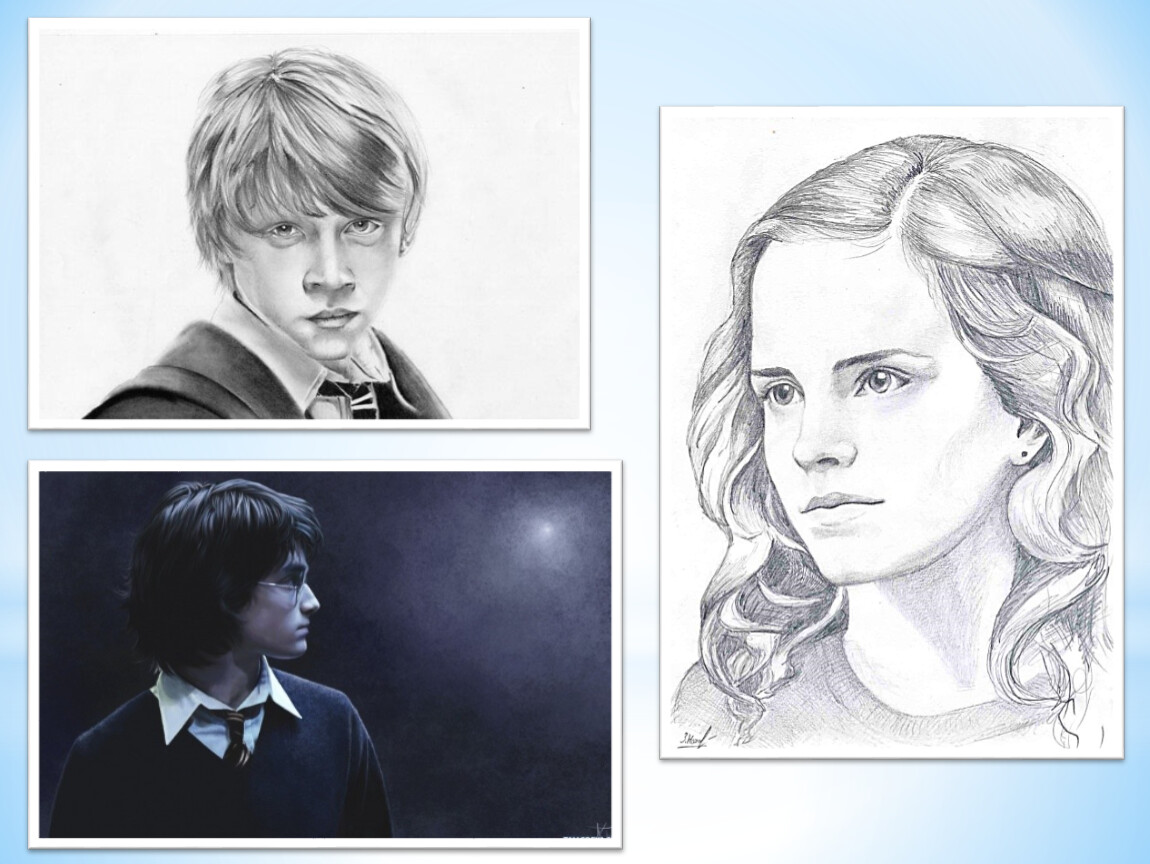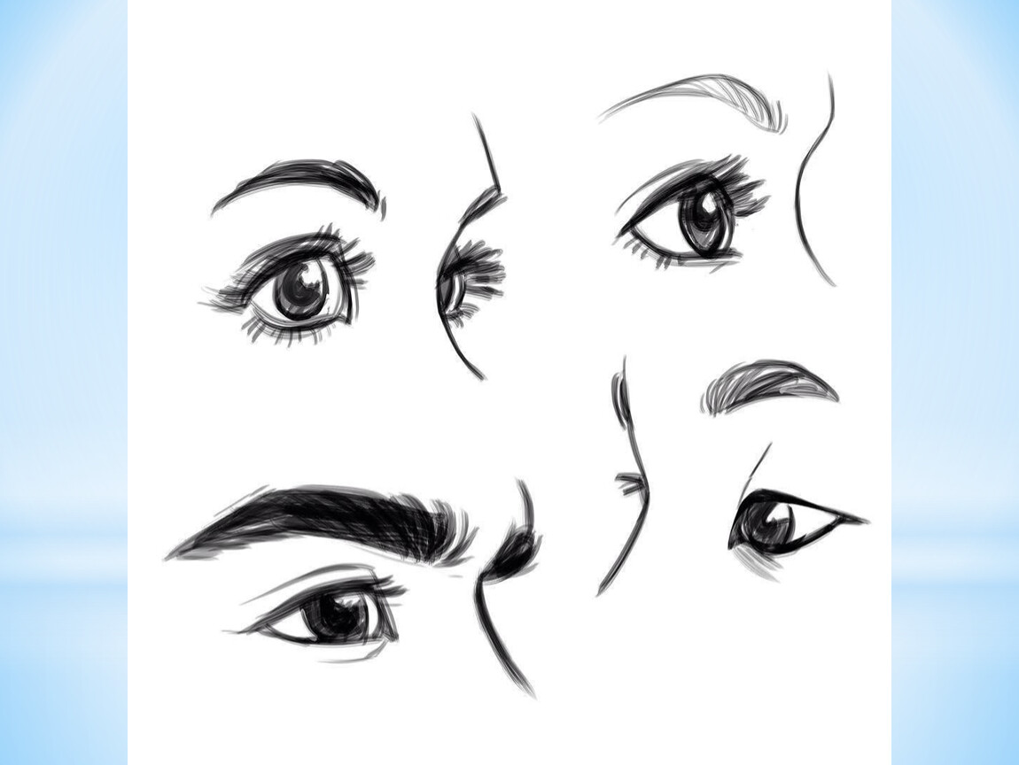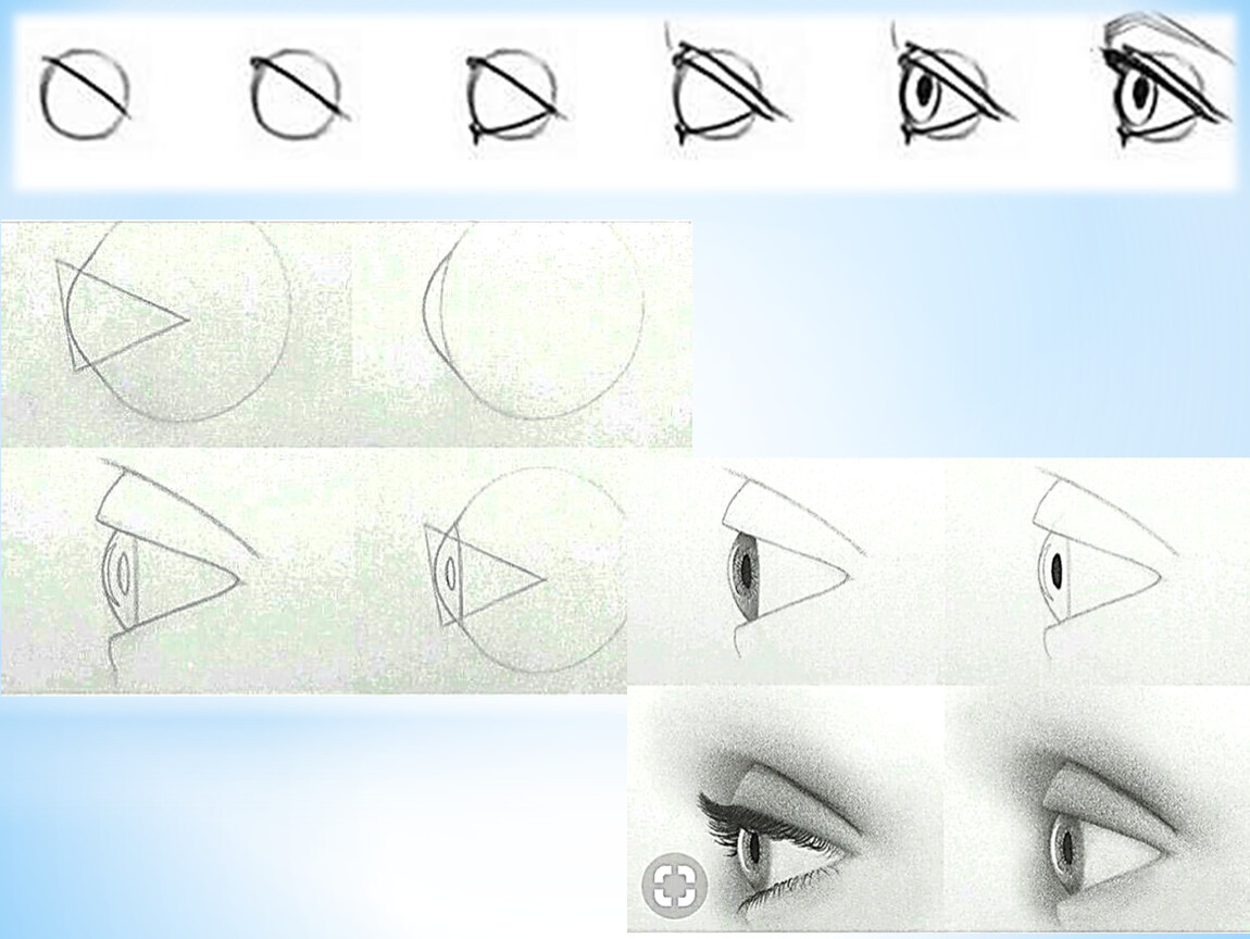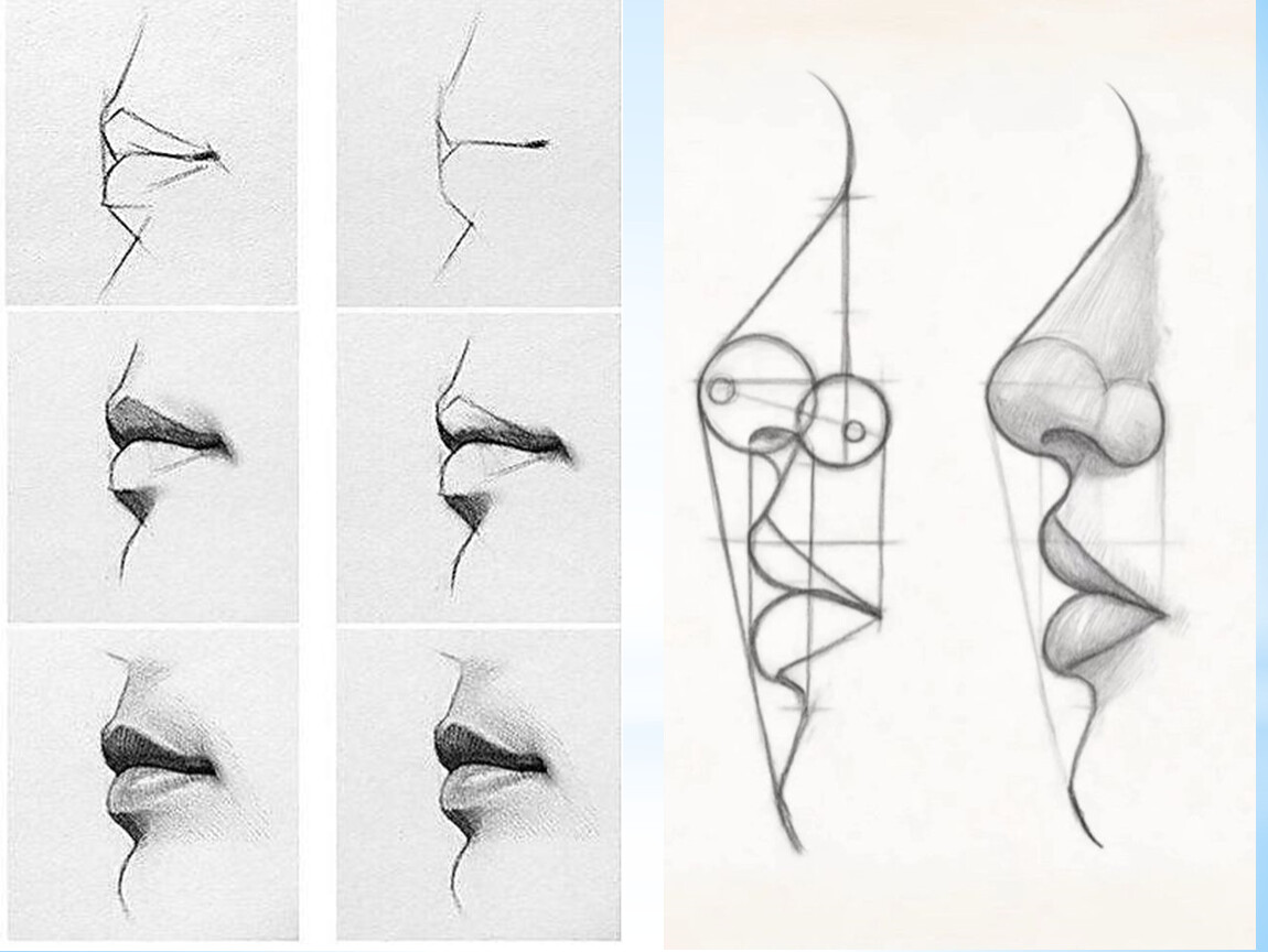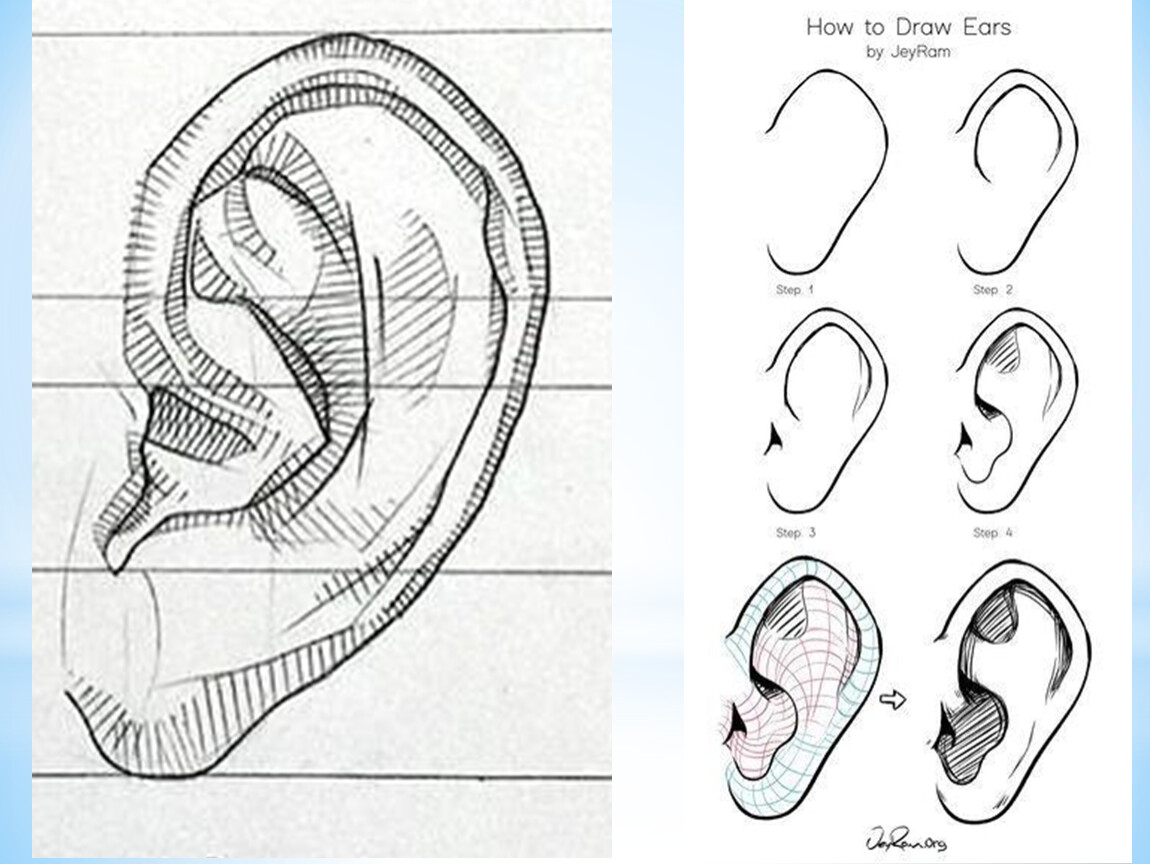 При повороте головы все пропорции дальней части головы становятся меньше ближней части.