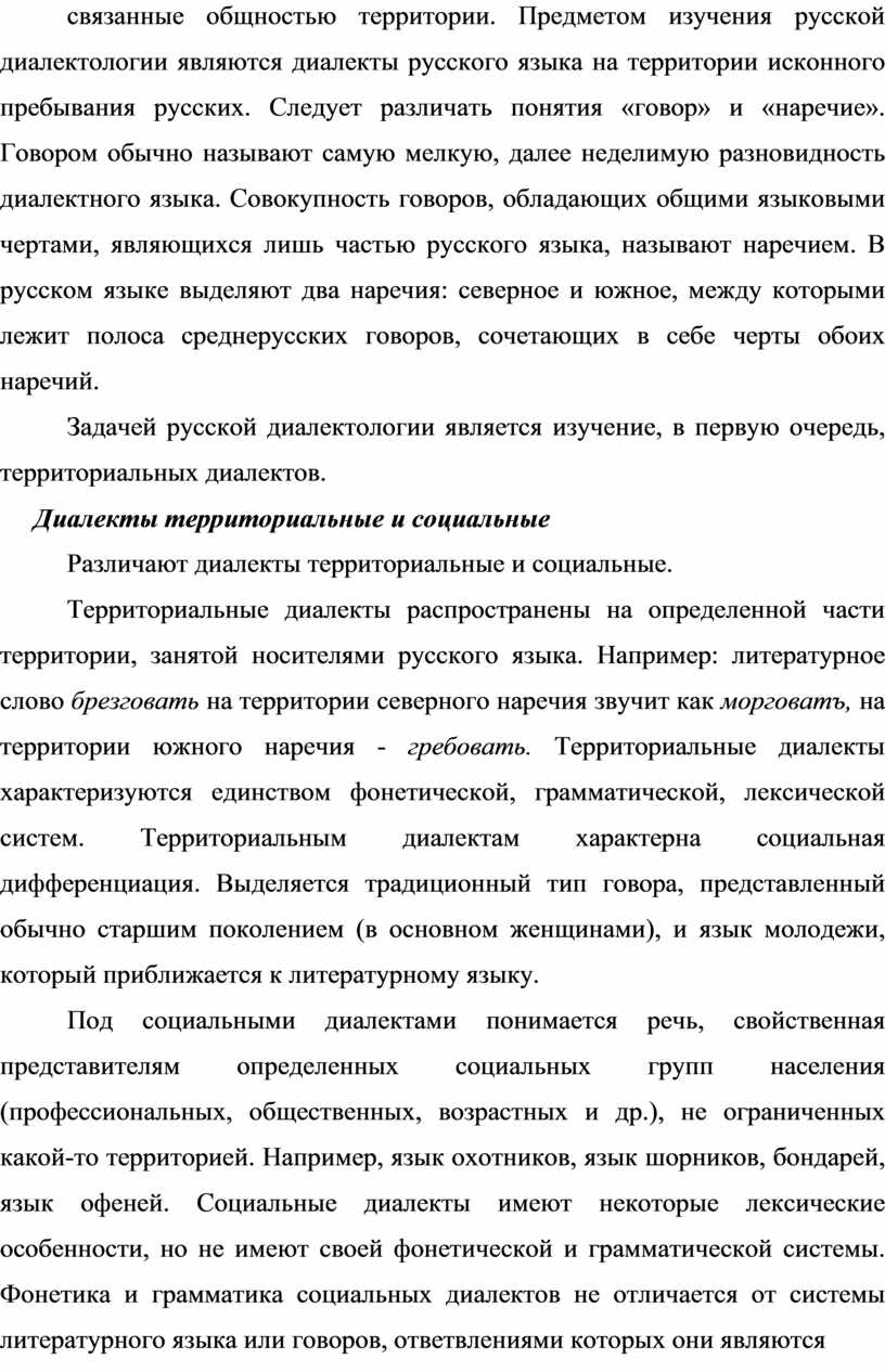 Задачей русской диалектологии является изучение, в первую очередь, территориальных диалектов.