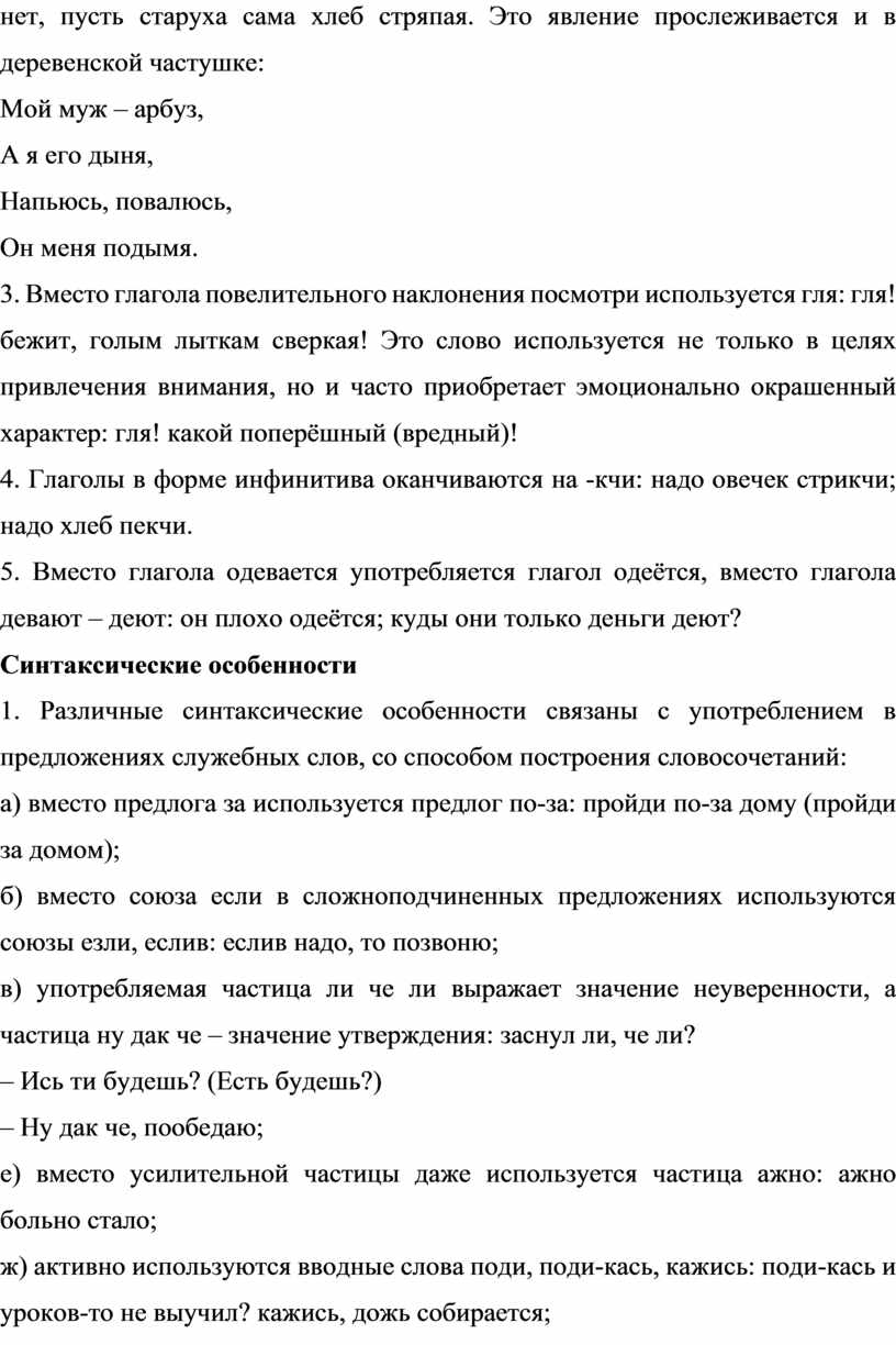 Языковые особенности диалектной речи жителей деревень.