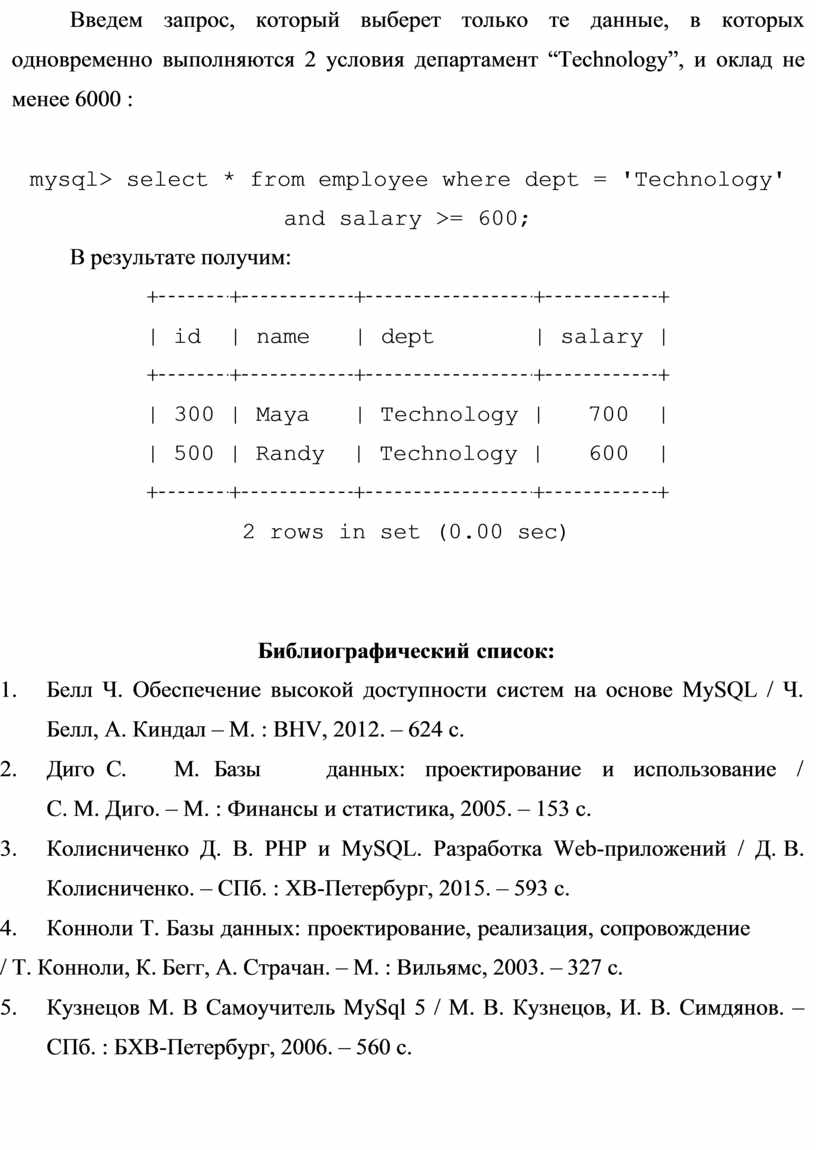 1. Белл Ч. Обеспечение высокой доступности систем на основе MySQL / Ч. Белл, А. Киндал – М. : BHV, 2012. – 624 c.