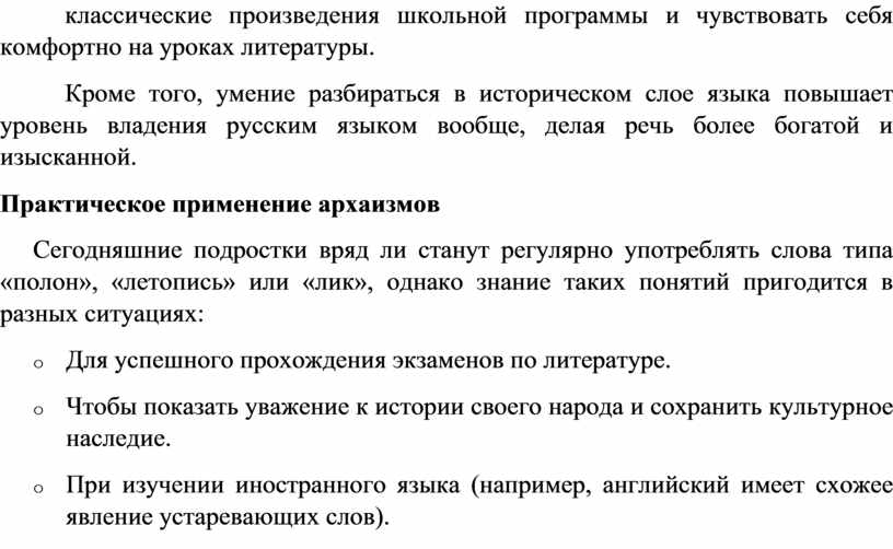 Кроме того, умение разбираться в историческом слое языка повышает уровень владения русским языком вообще, делая речь более богатой и изысканной.