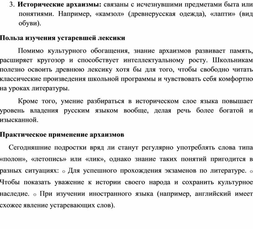 Кроме того, умение разбираться в историческом слое языка повышает уровень владения русским языком вообще, делая речь более богатой и изысканной.