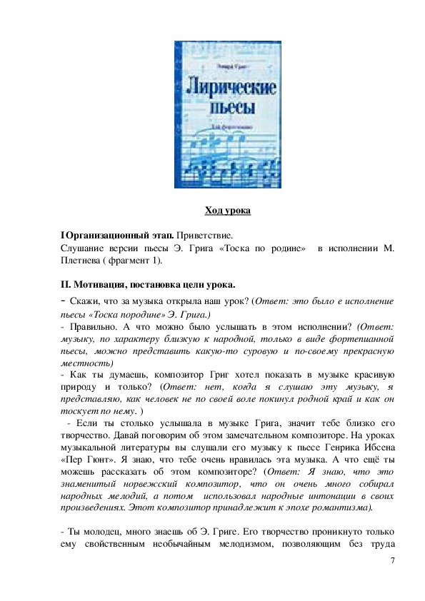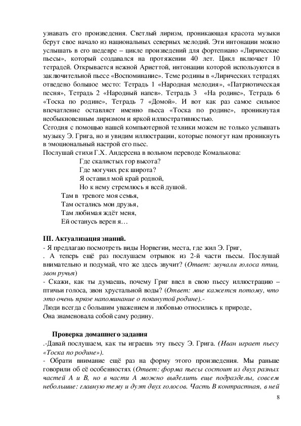 Э. ГРИГА «ТОСКА ПО РОДИНЕ» С ИСПОЛЬЗОВАНИЕМ ИКТ