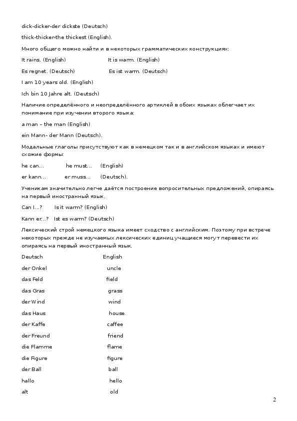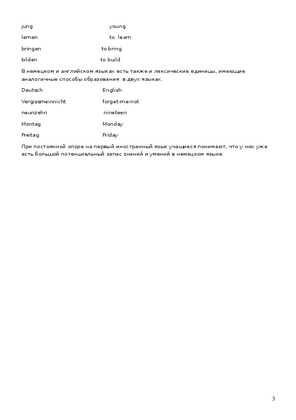 Также и мне в моей педагогической практике приходилось обучить детей как английскому, так и немецкому. Поэтому обучая учеников пятого-седьмого класса немецкому языку, я часто опираюсь на их первый изучаемый язык.