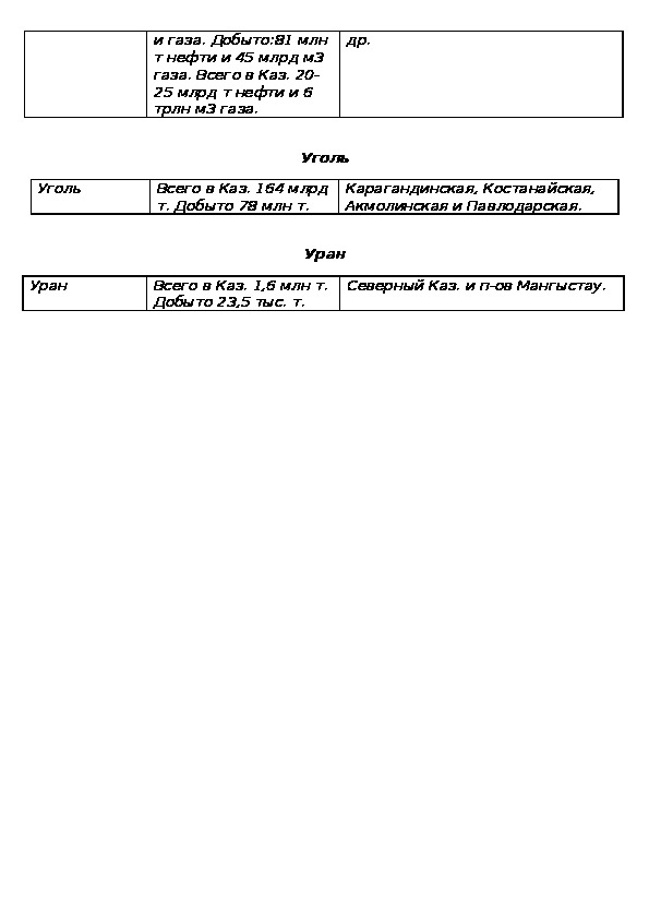 Каз. занимает 2-е место по запасам урана, хрома и марганца. 1-е место