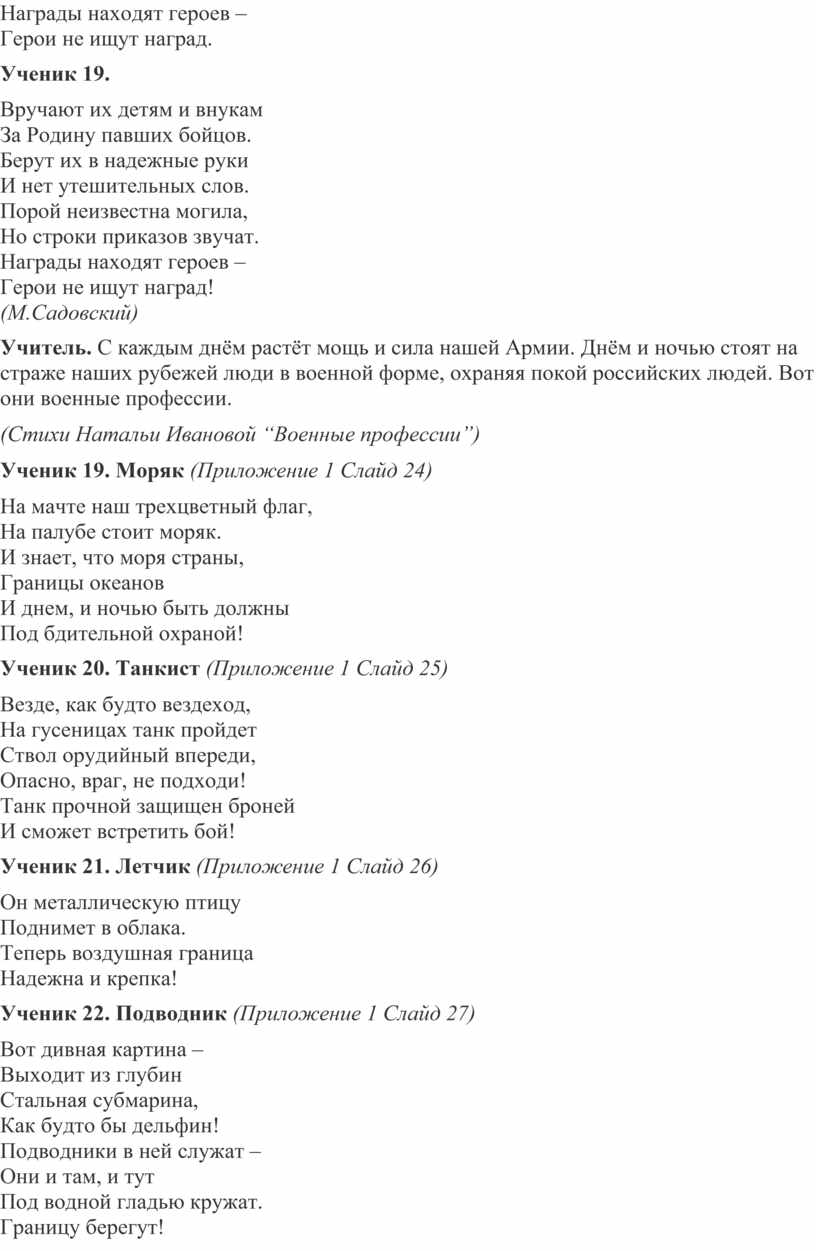 (Стихи Натальи Ивановой “Военные профессии”)