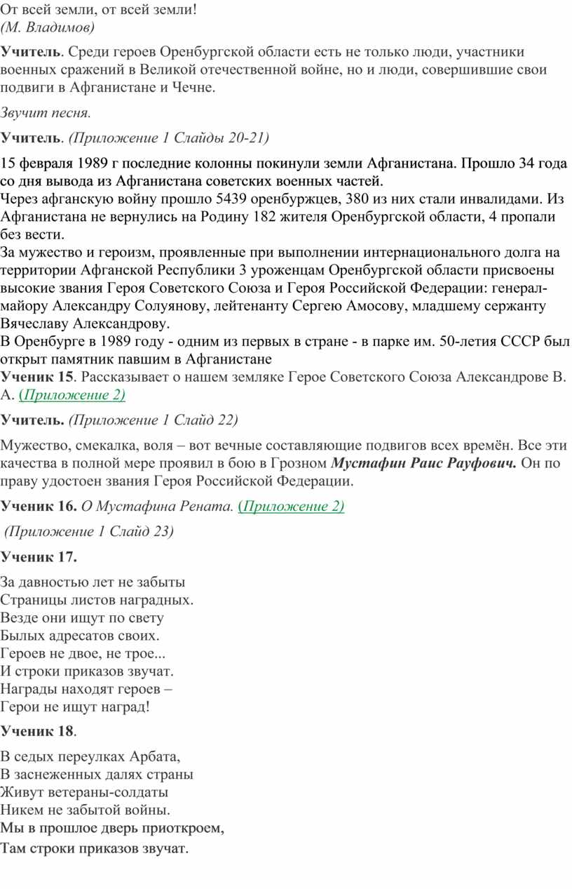 Учитель. Среди героев Оренбургской области есть не только люди, участники военных сражений в Великой отечественной войне, но и люди, совершившие свои подвиги в Афганистане и Чечне.