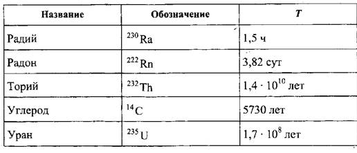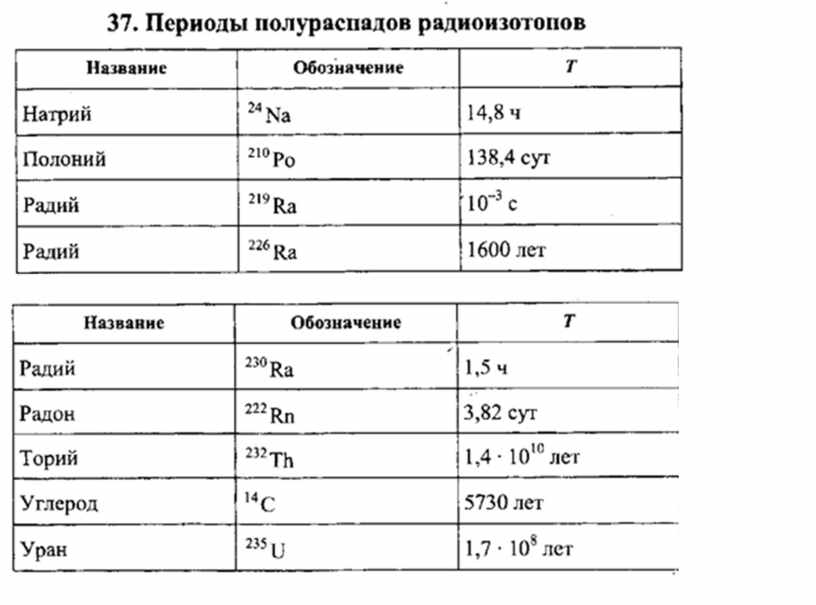 к уроку физики Приложение пероиды полураспадов радиоизотопов.docx