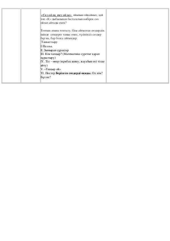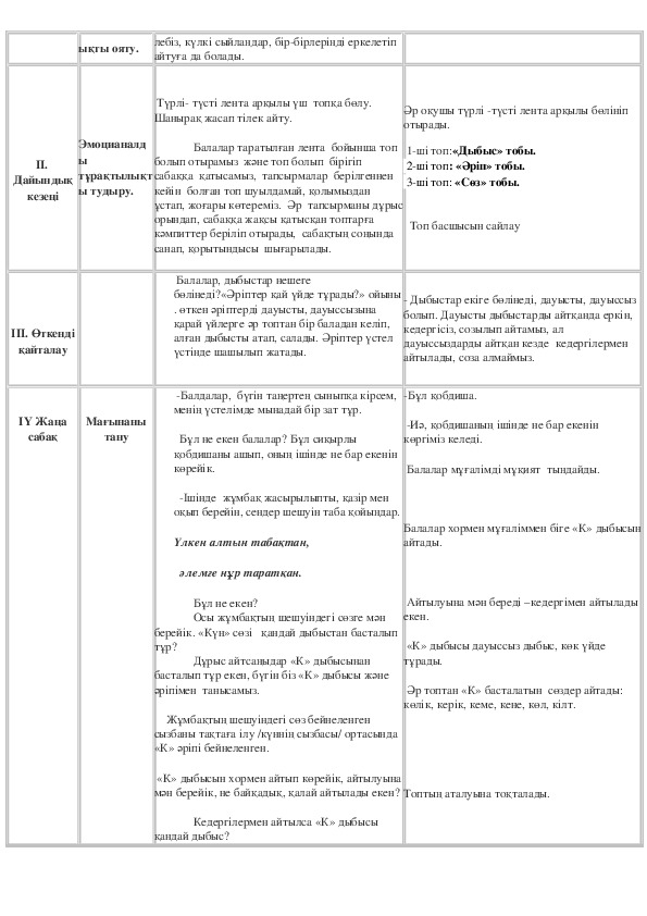 ә/ «К к» дыбысынан басталатын сөздер бейнеленген суреттерді топтастырады;Открытый урок. Пришкольный класс.