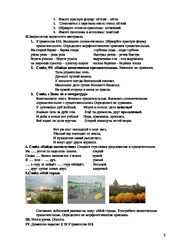 Составить небольшой рассказ на тему: «Мой город». Употребите качественные