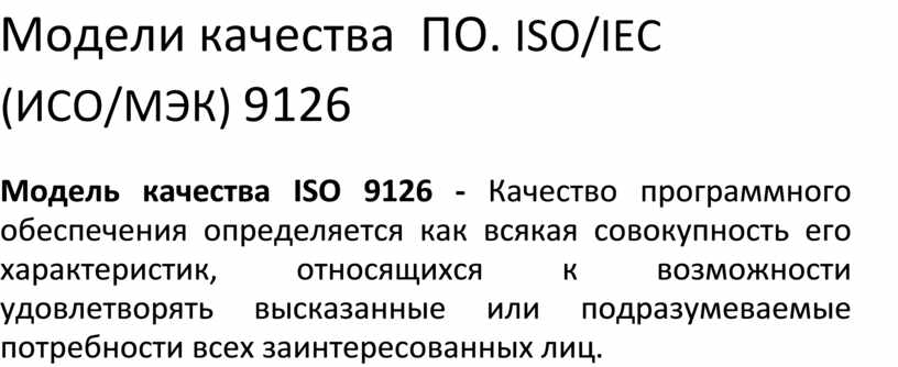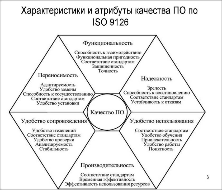 Модель качества ISO 9126 - Качество программного обеспечения определяется как всякая совокупность его характеристик, относящихся к возможности удовлетворять высказанные или подразумеваемые потребности всех заинтересованных лиц.