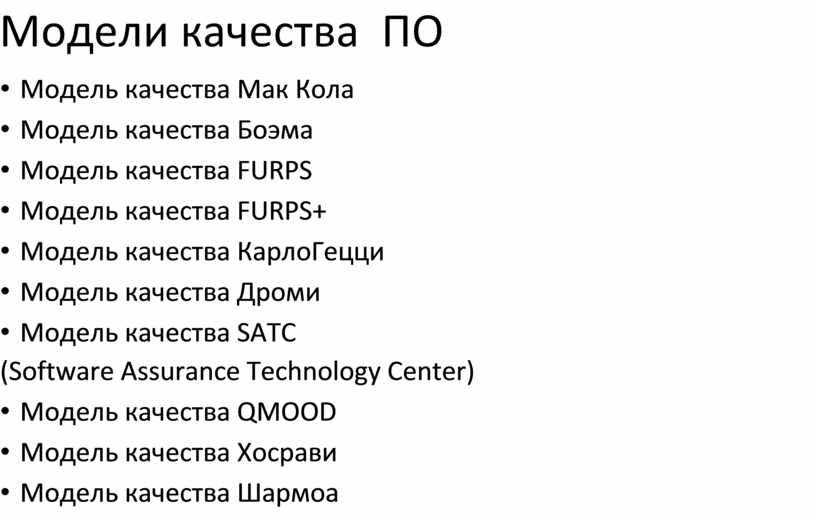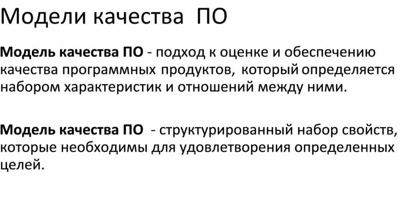 Модель качества ПО - подход к оценке и обеспечению качества программных продуктов, который определяется набором характеристик и отношений между ними.