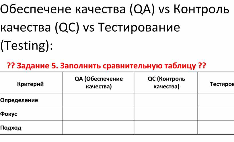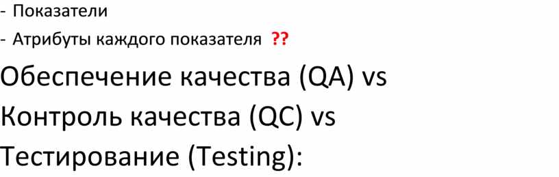 Обеспечение качества (QA) vs Контроль качества (QС) vs Тестирование (Testing):