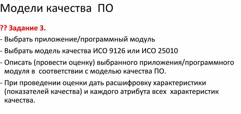 - Выбрать модель качества ИСО 9126 или ИСО 25010