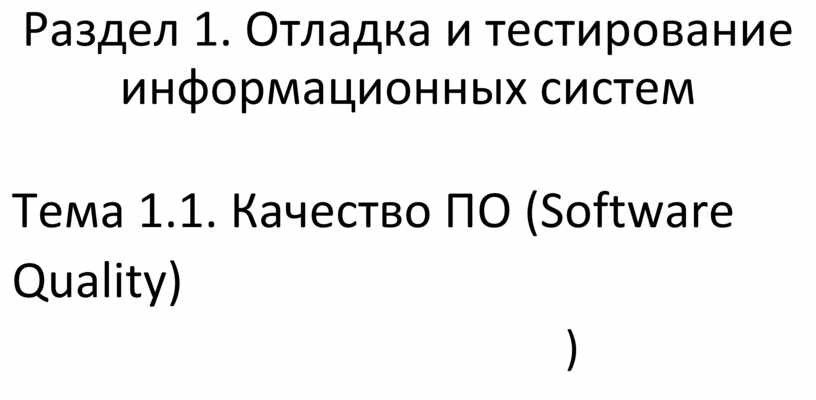 Раздел 1. Отладка и тестирование информационных систем