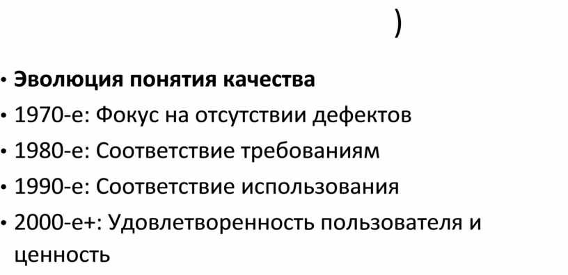 • Эволюция понятия качества