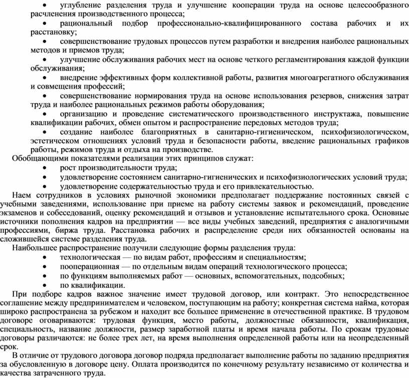 Структура производственного процесса должна базироваться на научных принципах организации труда, которые предполагают: