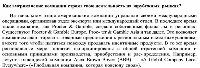 Как американские компании строят свою деятельность на зарубежных рынках?