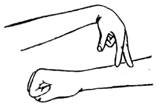 - пощипывание руки вдоль предплечья от кисти к локтю.
