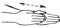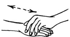 - ребром ладони одной руки «пилим» по ладони, предплечью другой руки.