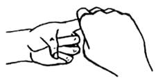 - сжав одну руку в кулачок, вставляем в него поочередно по одному пальцу
