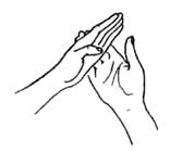 - обеими руками одновременно растираем о большие остальные пальцы по очереди