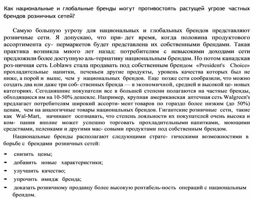 Национальные бренды располагают следующими страте гическими возможностями в борьбе с брендами розничных сетей: