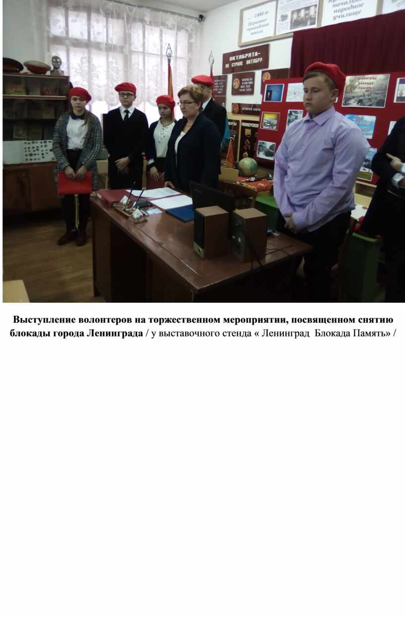 Выступление волонтеров на торжественном мероприятии, посвященном снятию блокады города Ленинграда / у выставочного стенда « Ленинград Блокада Память» /