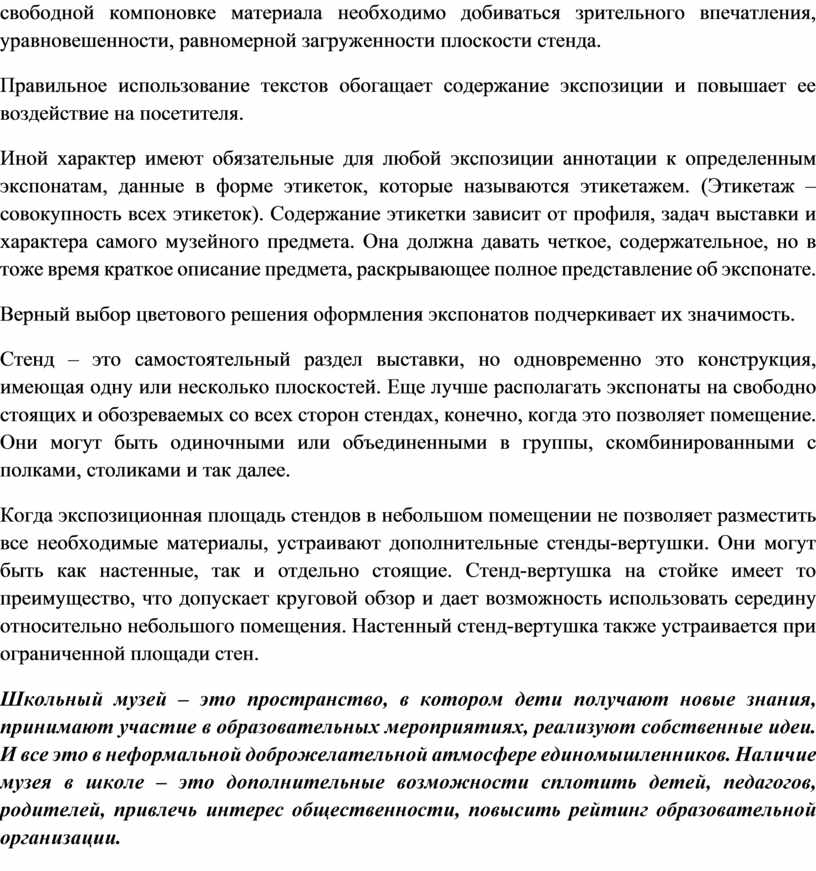 Правильное использование текстов обогащает содержание экспозиции и повышает ее воздействие на посетителя.