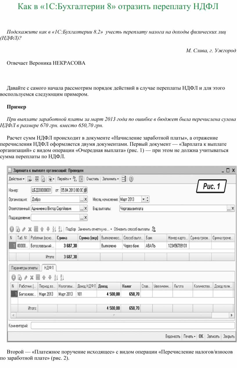 Как в «1С:Бухгалтерии 8» отразить переплату НДФЛ