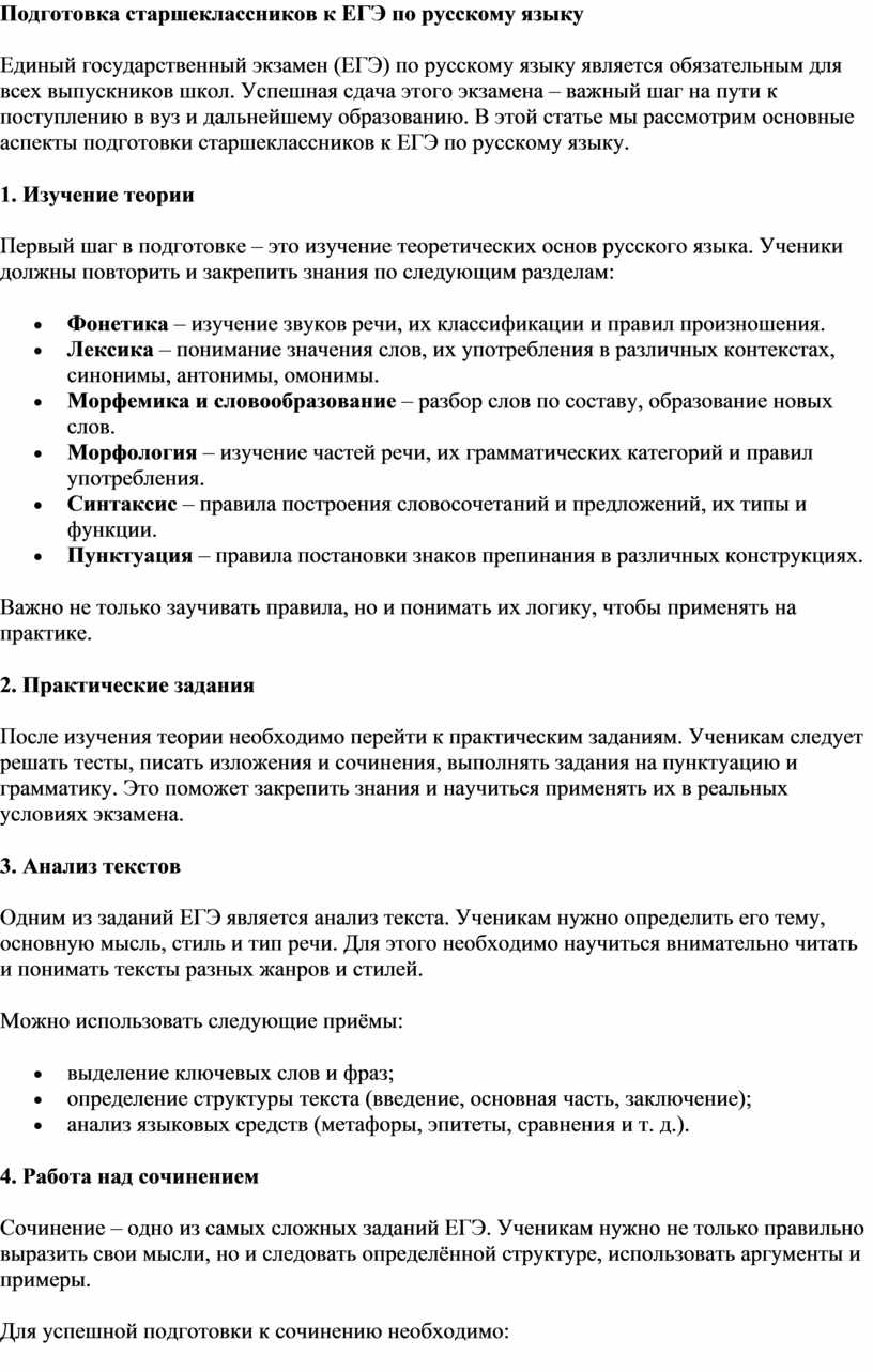 Единый государственный экзамен (ЕГЭ) по русскому языку является обязательным для всех выпускников школ. Успешная сдача этого экзамена – важный шаг на пути к поступлению в вуз и дальнейшему образованию. В этой статье мы рассмотрим основные аспекты подготовки старшеклассников к ЕГЭ по русскому языку.