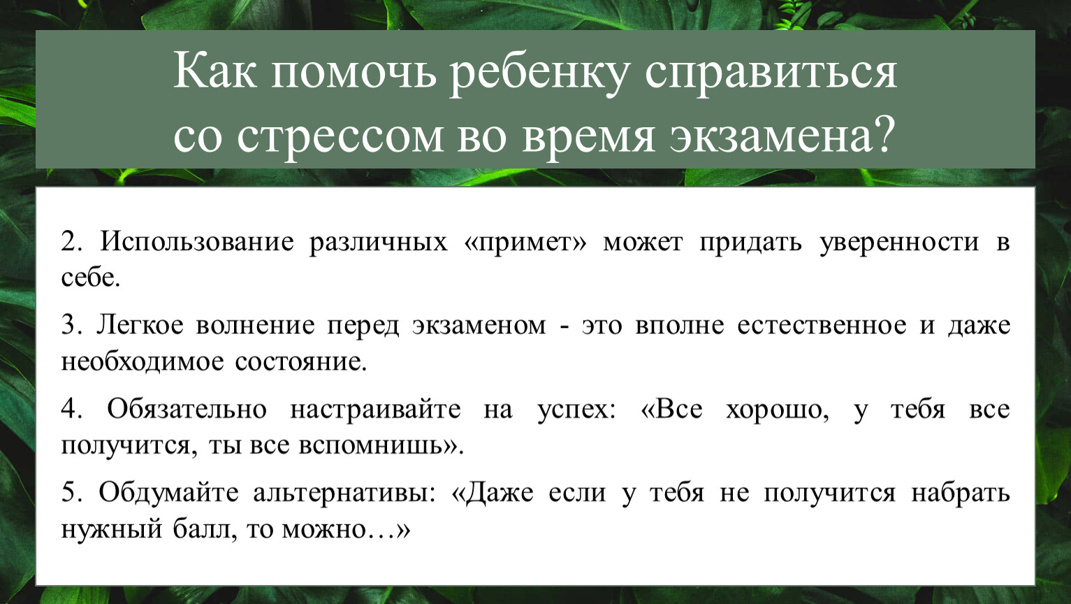 4. Обязательно настраивайте на успех: «Все хорошо, у тебя все получится, ты все вспомнишь».