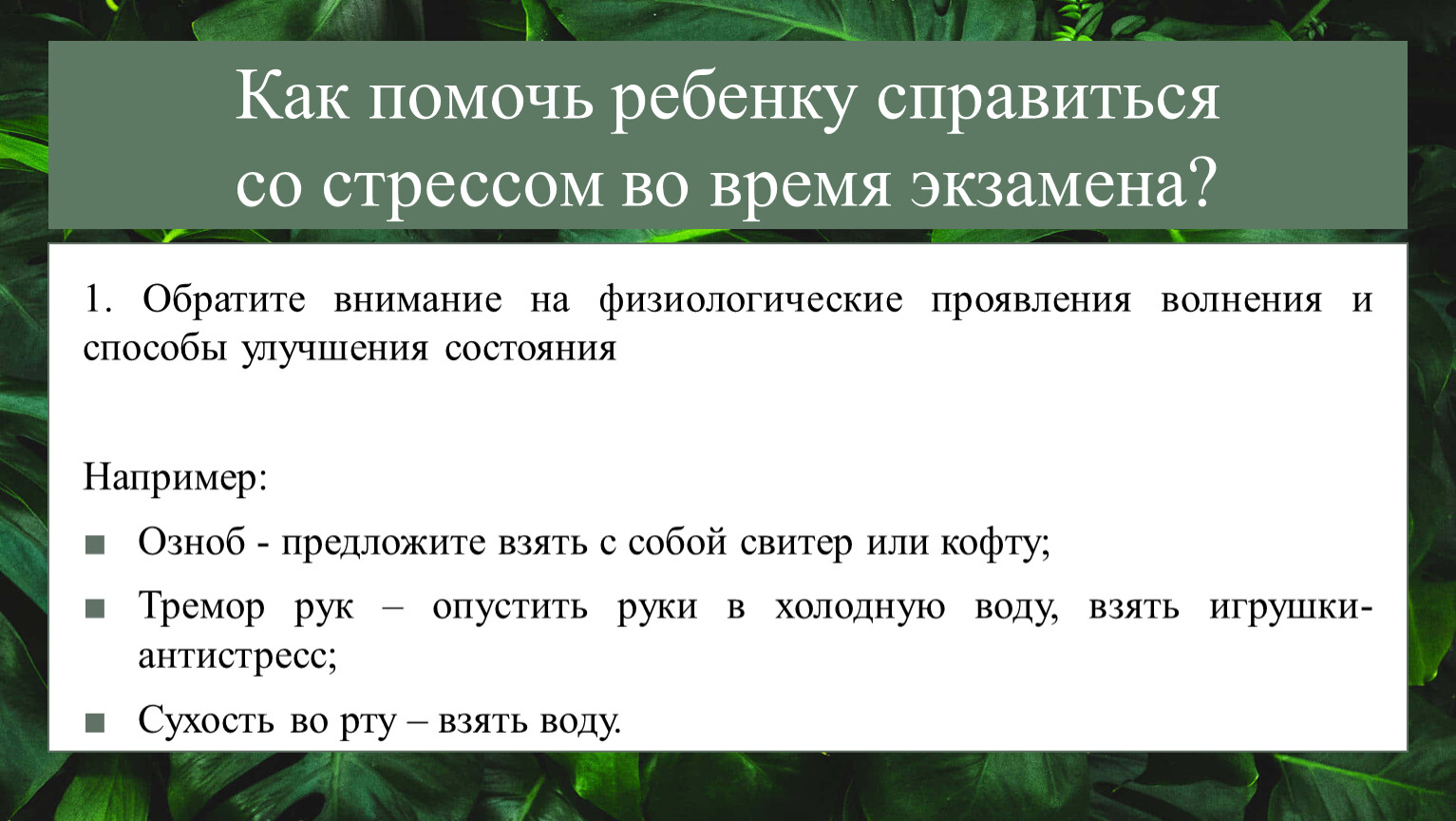 1. Обратите внимание на физиологические проявления волнения и способы улучшения состояния