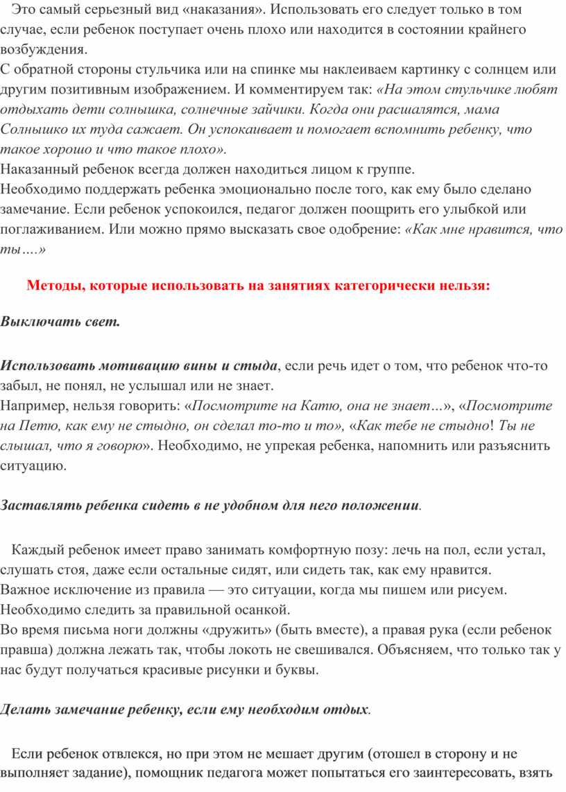 Методы, которые использовать на занятиях категорически нельзя: