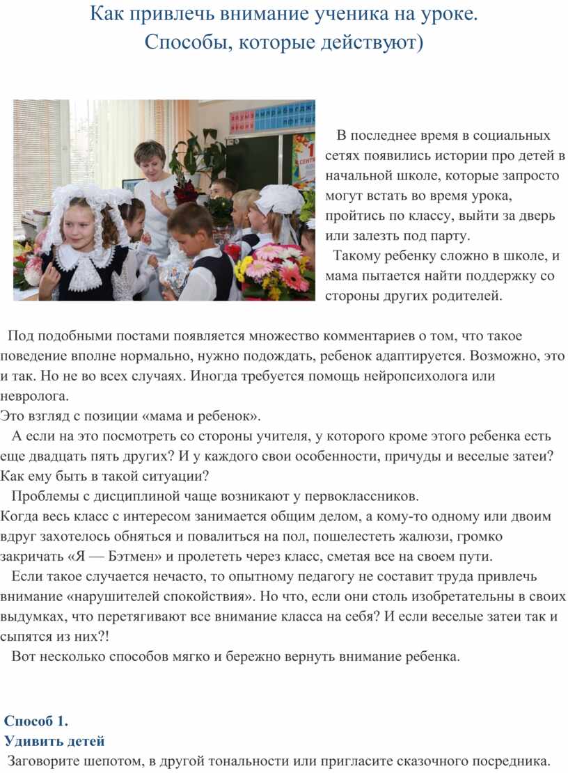 Как привлечь внимание ученика на уроке.