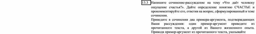 13.3 Напишите сочинение-рассуждение на тему «Что даёт человеку ощущение счастья?». Дайте определение понятию СЧАСТЬЕ и прокомментируйте его, ответив на вопрос, сформулированный в теме сочинения.