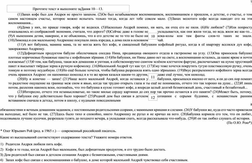4) Запах кофе был связан с воспоминаниями о бабушке, в доме которой маленький Андрей чувствовал себя счастливым.