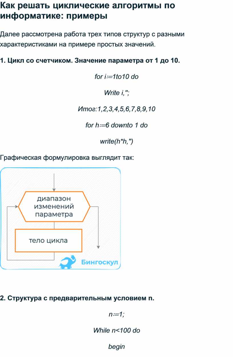 Как решать циклические алгоритмы по информатике: примеры