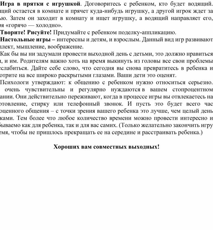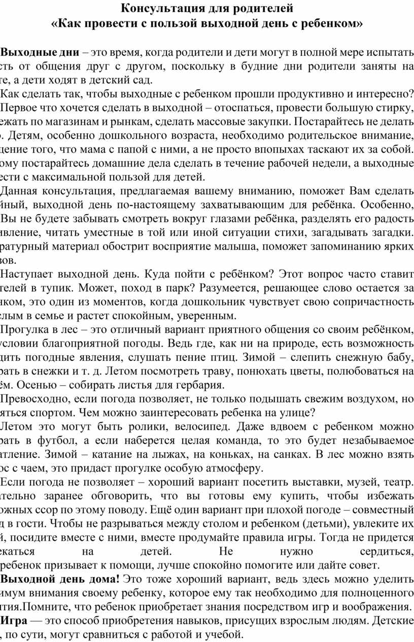 Выходные дни – это время, когда родители и дети могут в полной мере испытать радость от общения друг с другом, поскольку в будние дни родители заняты на работе, а дети ходят в детский сад.