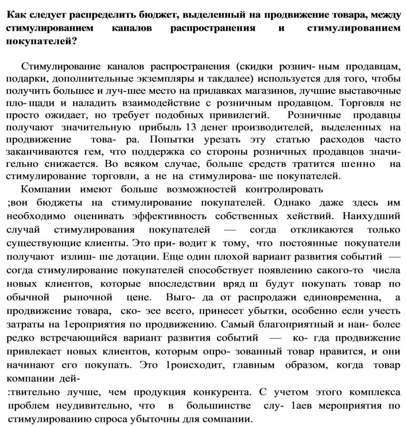 Как следует распределить бюджет, выделенный на продвижение товара, между стимулированием каналов распространения и стимулированием покупателей?