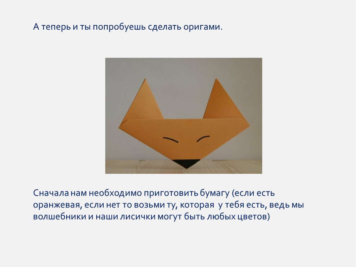 Сначала нам необходимо приготовить бумагу (если есть оранжевая, если нет то возьми ту, которая у тебя есть, ведь мы волшебники и наши лисички могут быть любых цветов)