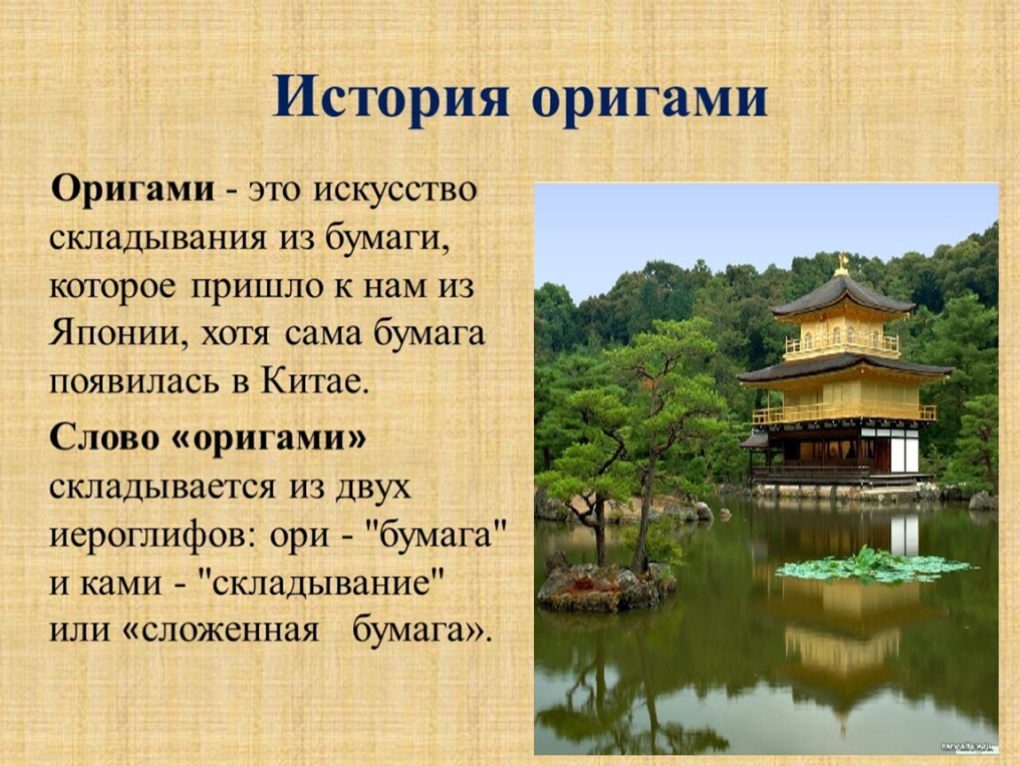 История оригами берёт свое начало в Японии. Именно японцы в начале 8 века начали складывать разные фигурки из бумаги.