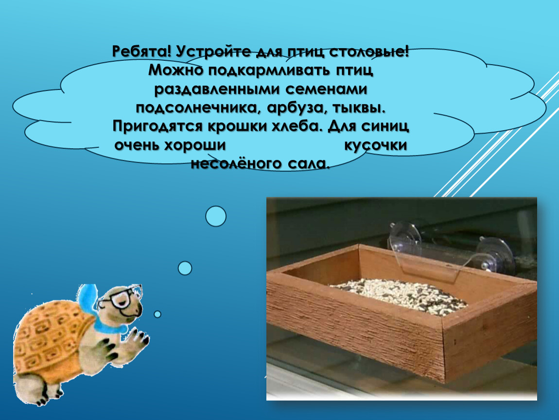 Кусочки сала годятся не всем птицам. Сало любят синички. Только сало не должно быть солёным. Овёс охотно съедят синицы, воробьи и чечётки.